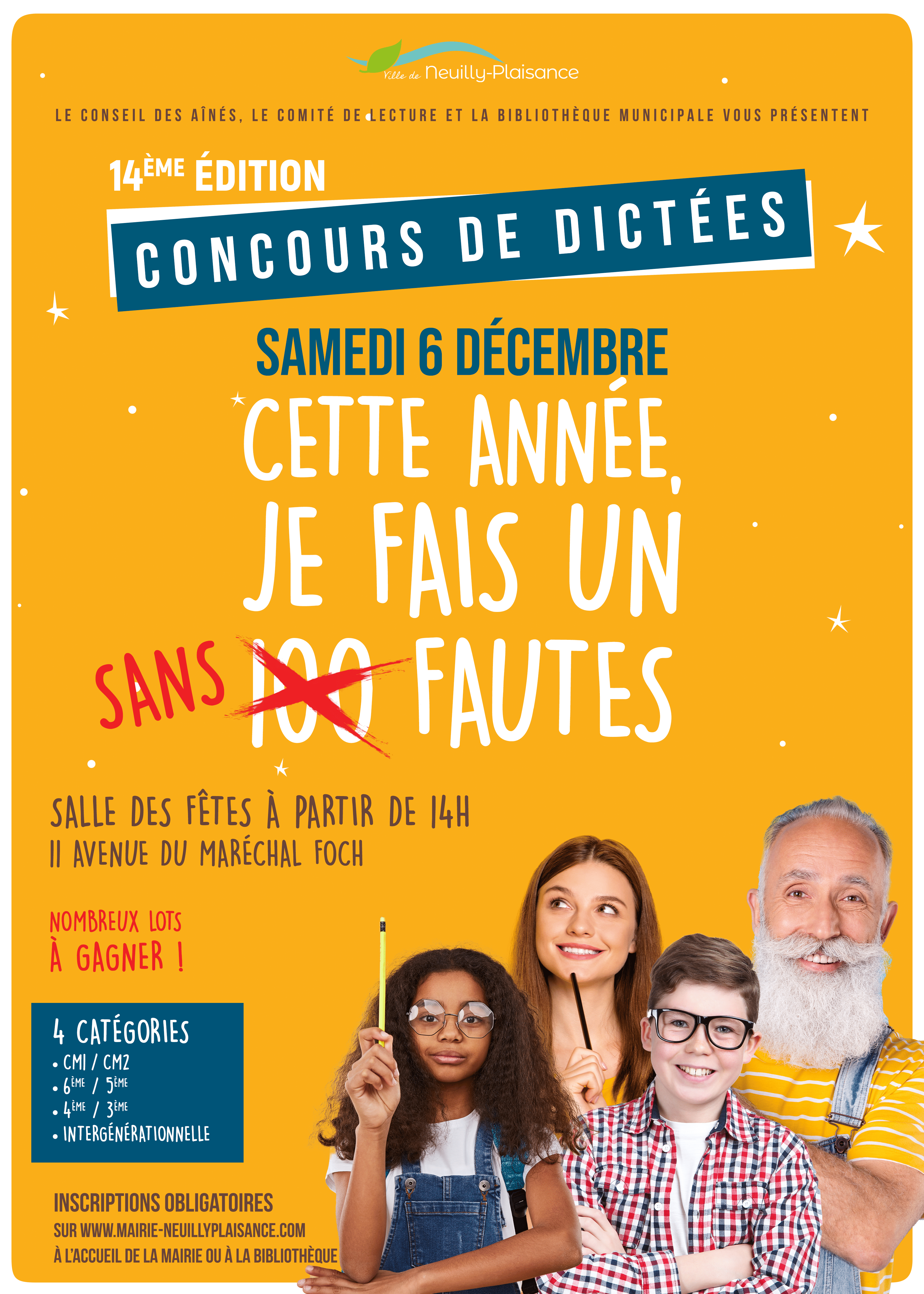 Pour la quatorzième fois, le Conseil des Ainés, le Comité de lecture et la bibliothèque municipale de Neuilly-Plaisance vous proposent de participer à la traditionnelle dictée, le samedi 6 décembre.