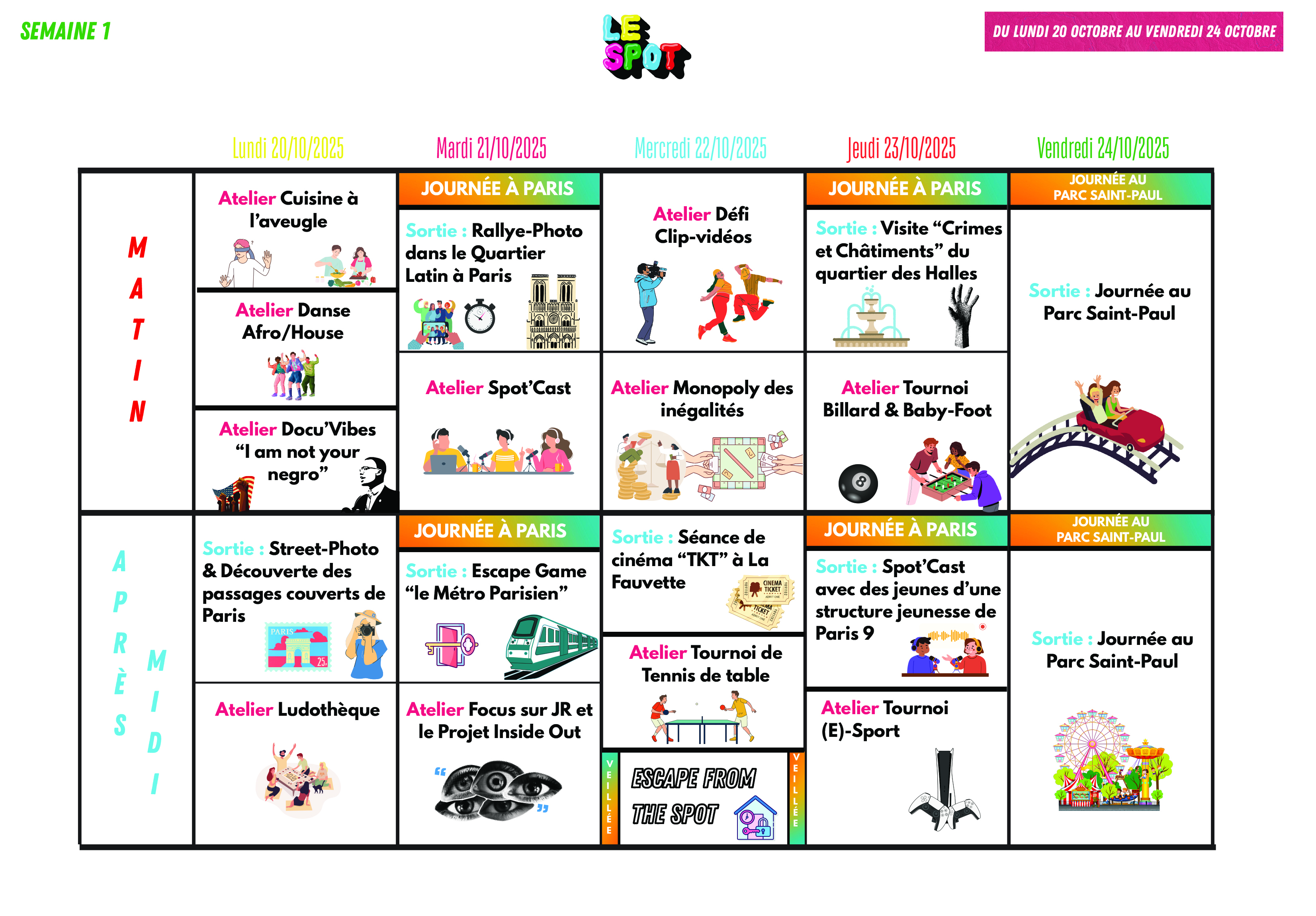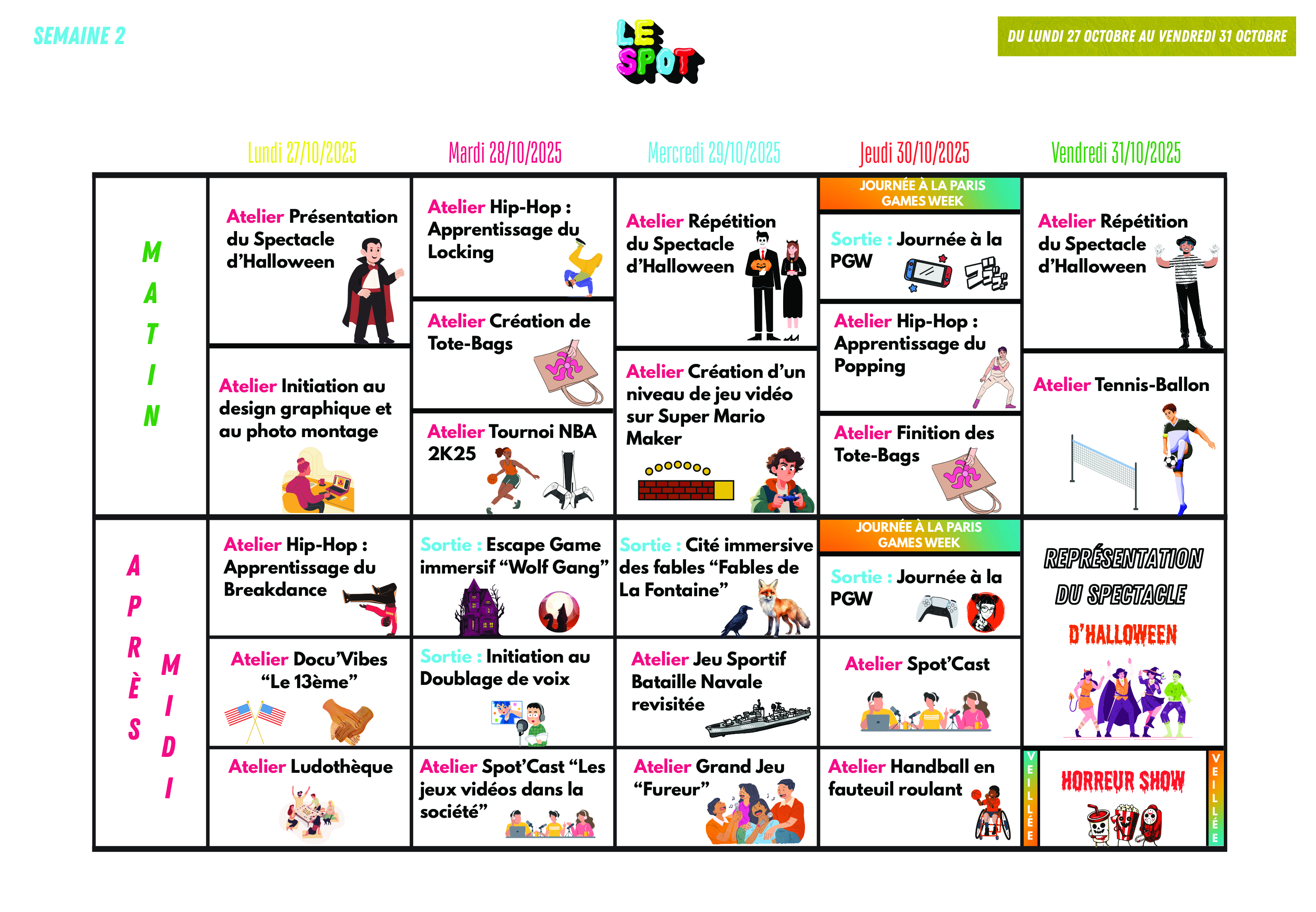 Calendriers des activités des vacances de la Toussaint 2025